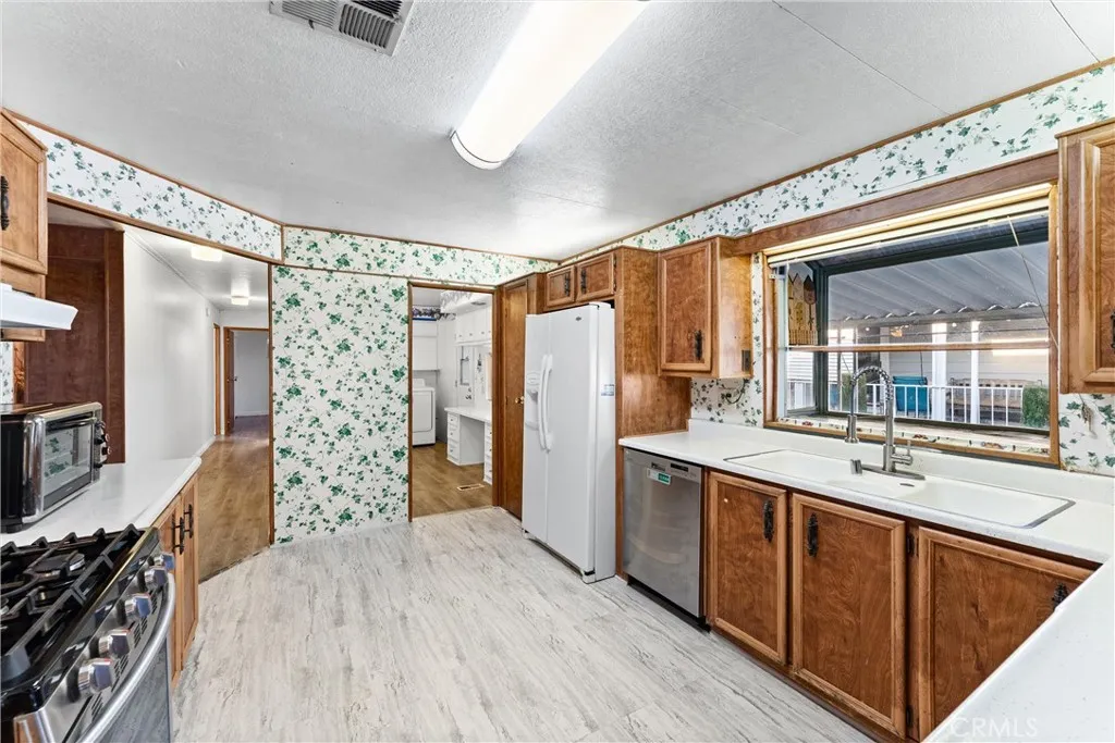 Welcome to #80 at Sunkist Gardens, a vibrant 55+ community in the heart of Anaheim! This 2-bedroom, 2-bath home has a great flowing floor plan you don't want to miss! Seller has taken care of the major systems, including new a/c and heating system and new tankless water heater. Along with replaced roof, laminate flooring, all plumbing, stove/oven, and dishwasher too. You just need to update the inside to your liking. Huge inside laundry room, lots of storage, light and bright living room and family room. Nice size kitchen with garden window too. Spacious walk-in storage shed at the end of your extra-wide driveway. The location is unbeatable - just minutes from Disneyland, Angel Stadium, Honda Center, and the exciting new OCVibe development, putting dining, music, sports, and entertainment right at your doorstep. Life at Sunkist Gardens is all about connection and enjoyment. Join in on community activities like bingo, bunco, exercise classes, game nights, and live big band music - or simply relax by the pool and spa. The clubhouse offers a full kitchen, library, pool tables, jukebox, and plenty of space to gather with friends. With outdoor BBQs, shaded tables, and lush surroundings, there's always something to enjoy. This home and community offer the perfect blend of comfort, convenience, and lifestyle - don't miss this opportunity!