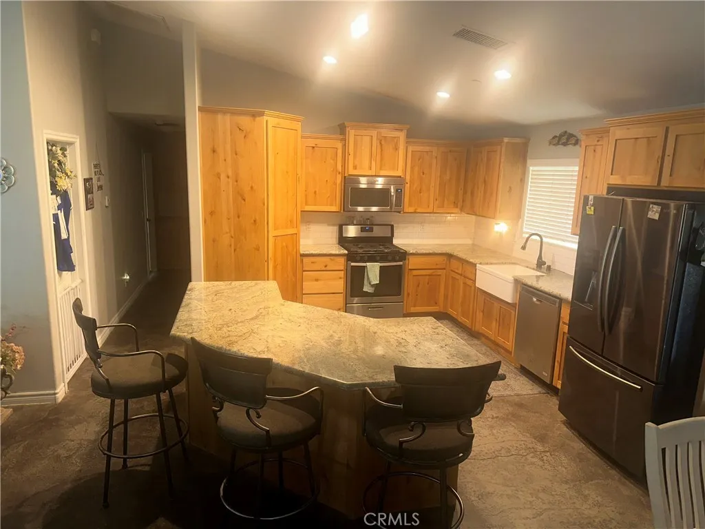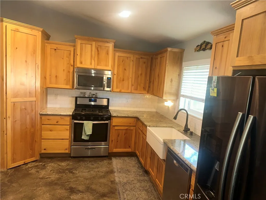 Nestled on nearly half an acre, this charming single-story home features 4 bedrooms and 2 bathrooms across about 1,957?sq?ft. Built in 2015, it offers a modern open floor plan with vaulted ceilings, stamped/stained concrete floors, custom knotty alder cabinetry, granite countertops, and a cozy zero-clearance wood-burning fireplace. The indoor laundry, farmhouse sink, and abundant natural light blend functionality and warmth. Outdoors, enjoy a generous covered patio framed by mature trees, perfect for entertaining or quiet relaxation.