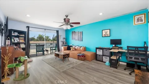 1-bedroom, 1-bath condo in Fullerton's gated Club Acacia community. This top-floor unit features newer laminate flooring, fresh paint, granite countertops, and updated appliances, including a dishwasher and stainless steel sink. Enjoy the convenience of an elevator, a private balcony, and access to resort-style amenities, including a pool, spa, BBQ area, gym, sauna, library, and conference lounge. Centrally located near the 57 and 91 Freeways for easy commuting.