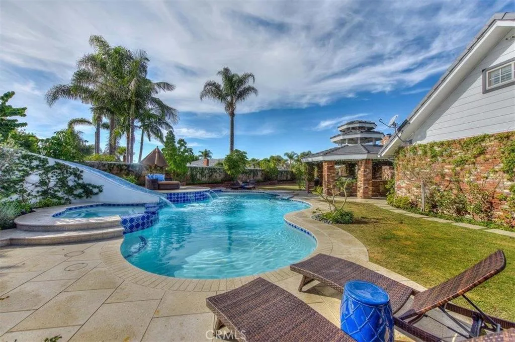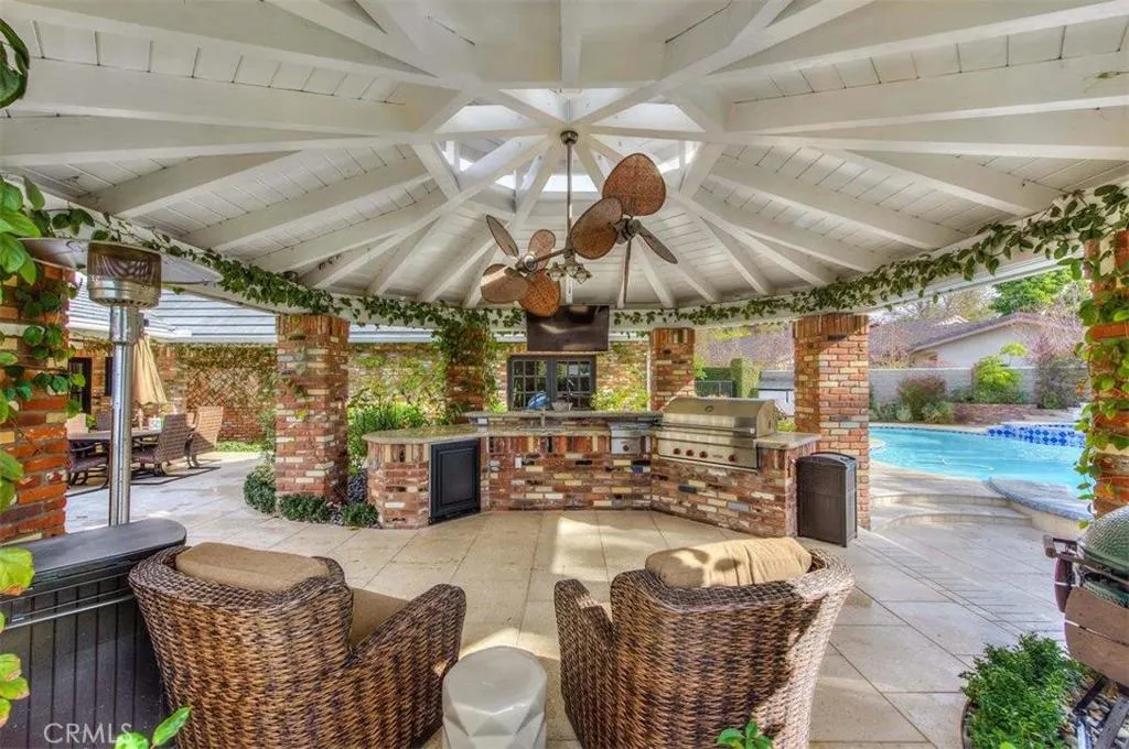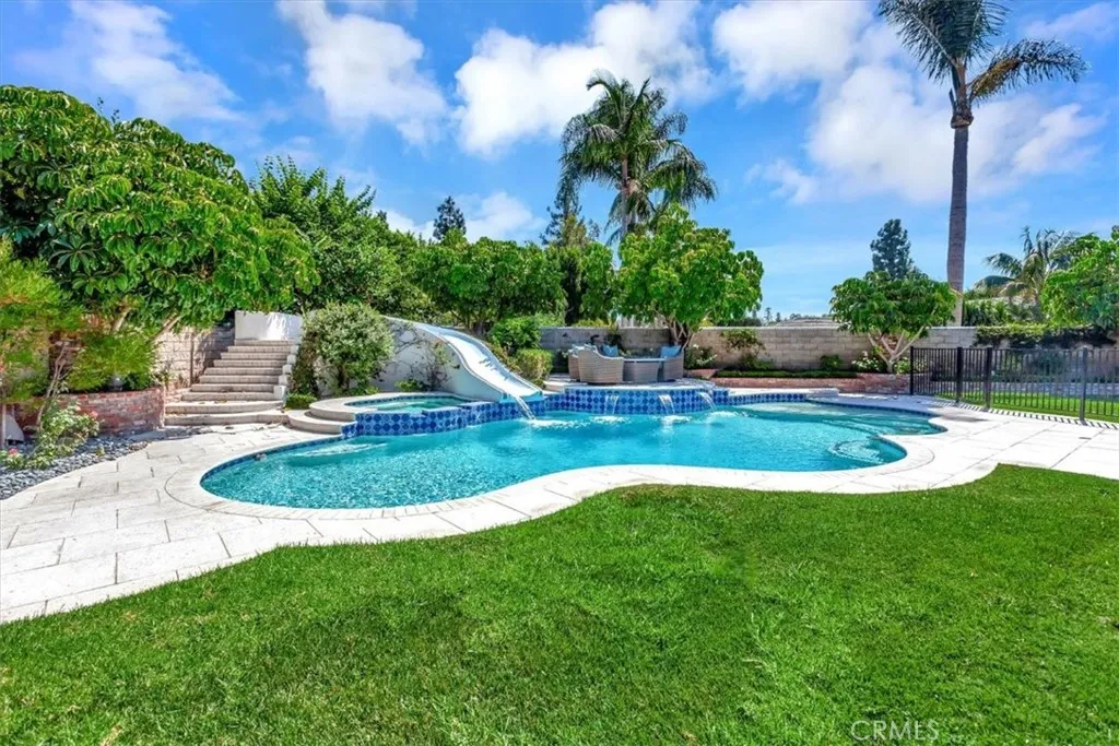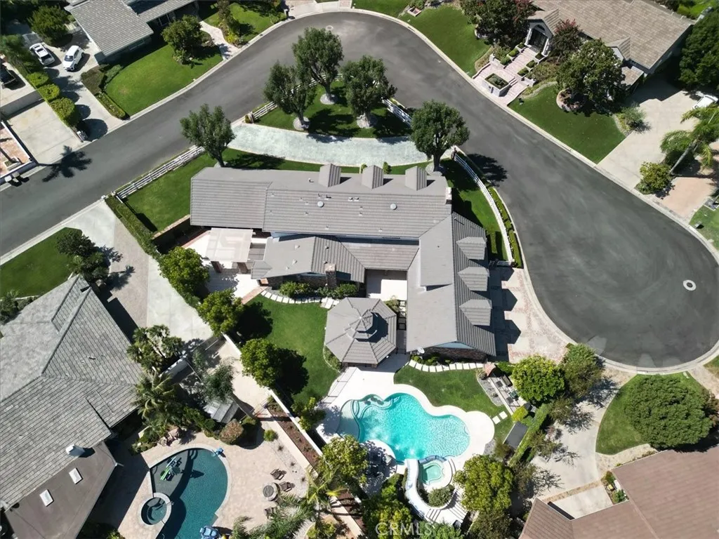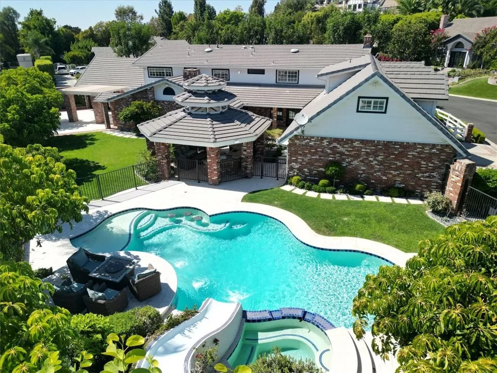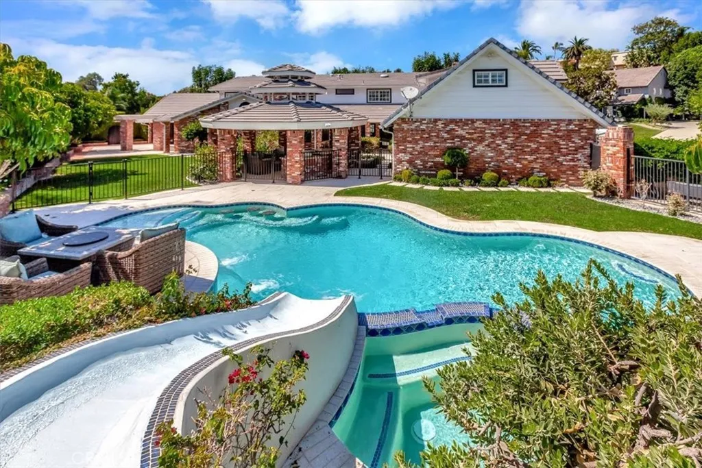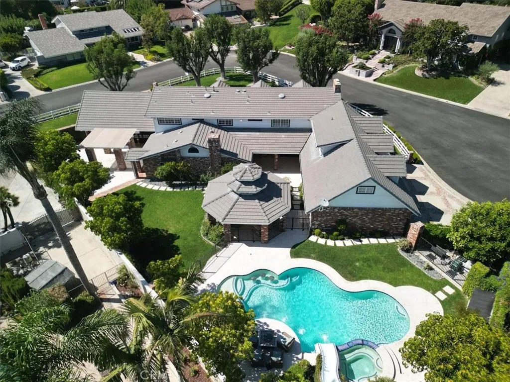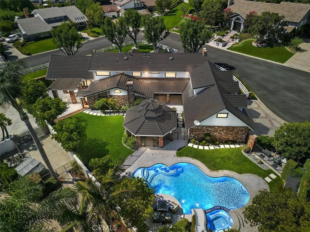 Look no further- this prestigious gated custom estate exudes elegance and sophistication, offering the perfect place to call home. Boasting impressive curb appeal, this stunning home is nestled on a private cul-de-sac and set on a sprawling 1/2 acre of secluded grounds. This magnificent home boasts nearly 6,000 SqFt of luxury living, 4 bedrooms, 4.5 baths, a spacious entertainment room, music room, and craft room (which can easily convert into an office). The gourmet kitchen is a chef s dream, featuring custom cabinetry, an expansive island complete with bar seating, full-size Sub-Zero refrigerator and freezer, dual dishwashers, ice machine, premium appliances, and a walk-in pantry. The expansive primary suite is a retreat of its own, complete with a cozy fireplace, opulent master bath, custom stone finishes, soaking tub, walk-in shower, dual vanities, and an oversized walk-in closet. Each additional bedroom offers generous space and en-suite bathrooms for ultimate comfort. Designed for both indoor and outdoor entertaining, this home offers unmatched elegance and privacy. Experience unparalleled outdoor entertaining in your private backyard oasis. The immaculate landscape design, complemented by mature trees, offers an exceptional blend of luxury, privacy, and tranquility. Your guests will revel in the sparkling oversized resort-style pool, complete with a waterslide, or unwind on the in-pool barstools. Spend your evenings in the spa, embracing ultimate relaxation. A stunning gazebo, featuring a fully equipped outdoor kitchen and built-in BBQ, provides the perfect space for hosting gatherings, while an additional pergola-covered entertaining area is ideally situated off the entertainment room and kitchen. No expense was spared in the renovation of this estate, featuring the highest quality finishes including stone, marble, and wood floors. This property also features a upstairs laundry room, a 4 car (with extra depth) attached garage and abundant storage complete this extraordinary home. Only minutes to all Villa Park has to offer, including award-winning schools, horse and hiking trails, amazing foodie spots, shopping, easy freeway and toll road access and great VP community events. Move-in ready and awaiting its next discerning owner, this one-of-a-kind property is a must-see!